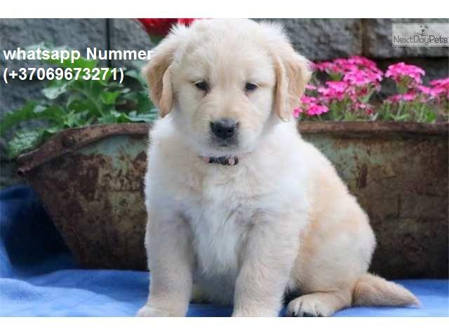 Golden Retriever Welpen zur Annahme. dich liebt alle und zieht eine Menge, um den Ball zu spielen. gibt es gut sozialisiert mit anderen Hunden, Katzen und Kinder gibt geimpft sind, Tierarzt kontrolliert, entwurmt und kommen an der Seite mit all ihren Spielzeug und notwendigen Unterlagen. Bei Interesse können Sie uns verschicken. Bitte kontaktieren Sie uns direkt auf whatsapp Nummer (+37069673271)
